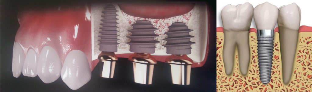 Dental implantlar çene kemiğine yerleştirilen ve protezlere destek için yapılan yapay diş kökleridir. Bunlar eksik dişlerin yerine yapılan, uzun ömürlü ve yaşam boyu sorunsuz şekilde kullanılabilen titanyumdan üretilmiş vidalardır. İmplantlar uzman diş hekimleri tarafından steril ortamlarda küçük bir cerrahi işlemle çene kemiğine yerleştirilirler. Bu işlem sonrasında yaklaşık olarak iki-üç ay içerisinde implant çene kemiğine tamamen tutunur. Bu aşamalardan sonra gerçek bir diş kökünün yerini alan implant, üzerine konacak protezi taşıyacak duruma gelir. İmplant uygulamasının yapılabilmesi için, öncelikle implantı destekleyecek kemik yapısının ve diş etlerinin yeterli miktarda ve sağlıklı olması gerekir. Bunlar olmadığı durumda ilave kemik cerrahisi uygulamaları (kemik ogmentasyonu, yapay kemik greft uygulamsı, sinüs lift, otojen blok kemik greft) ile de implant yapılır ve başarı oranı çok yüksektir.